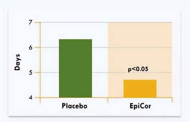 結(jié)果顯示:EpiCorR可以明顯減少感冒的次數(shù)(p = 0.01),明顯縮短感冒癥狀的時(shí)間(p = 0.03)。
