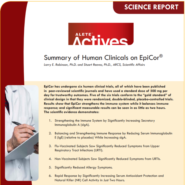 [2] Robinson L E , D Ph, D Ph, et al. SCIENCE REPORT Rapid Immune Responses to EpiCor® Consumption in Humans