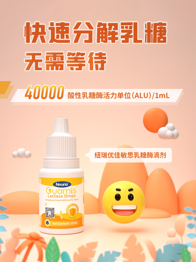 紐瑞優(yōu)佳敏思乳糖酶,奶前滴六滴,舒化好吸收~