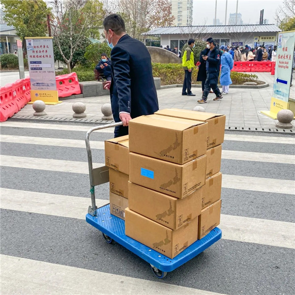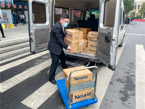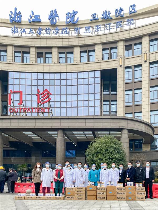 捐贈(zèng)儀式上,紐瑞優(yōu)負(fù)責(zé)人將一箱箱愛心物資遞交給浙江醫(yī)院的相關(guān)負(fù)責(zé)人,希望廣大醫(yī)務(wù)工作者能保重身體,平安戰(zhàn)疫。