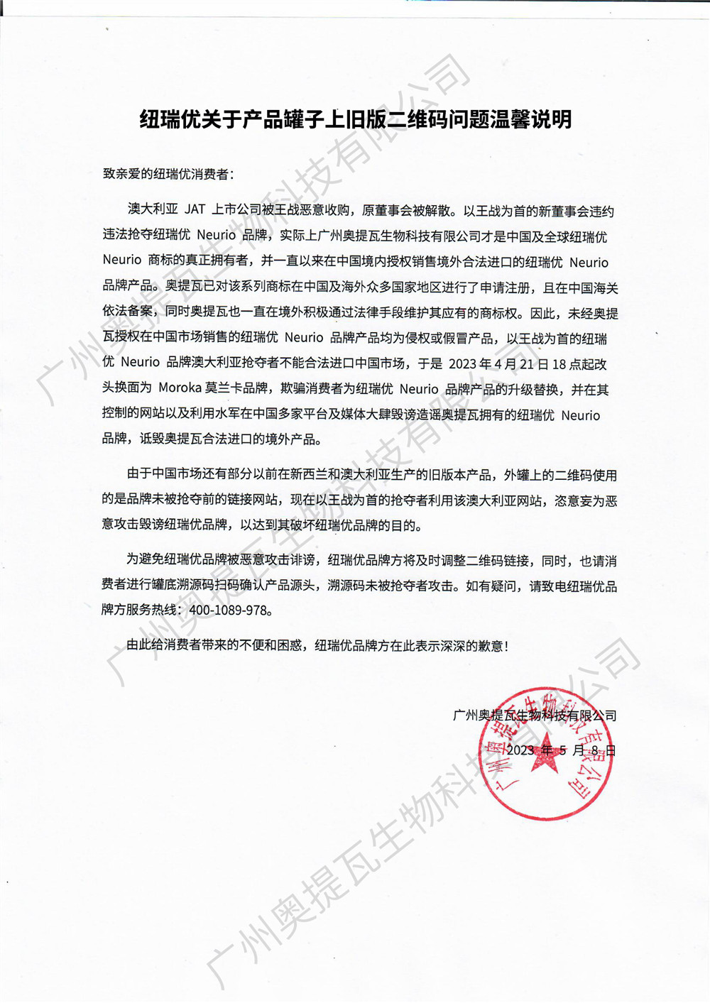 紐瑞優(yōu):關于產(chǎn)品罐子上舊版二維碼問題