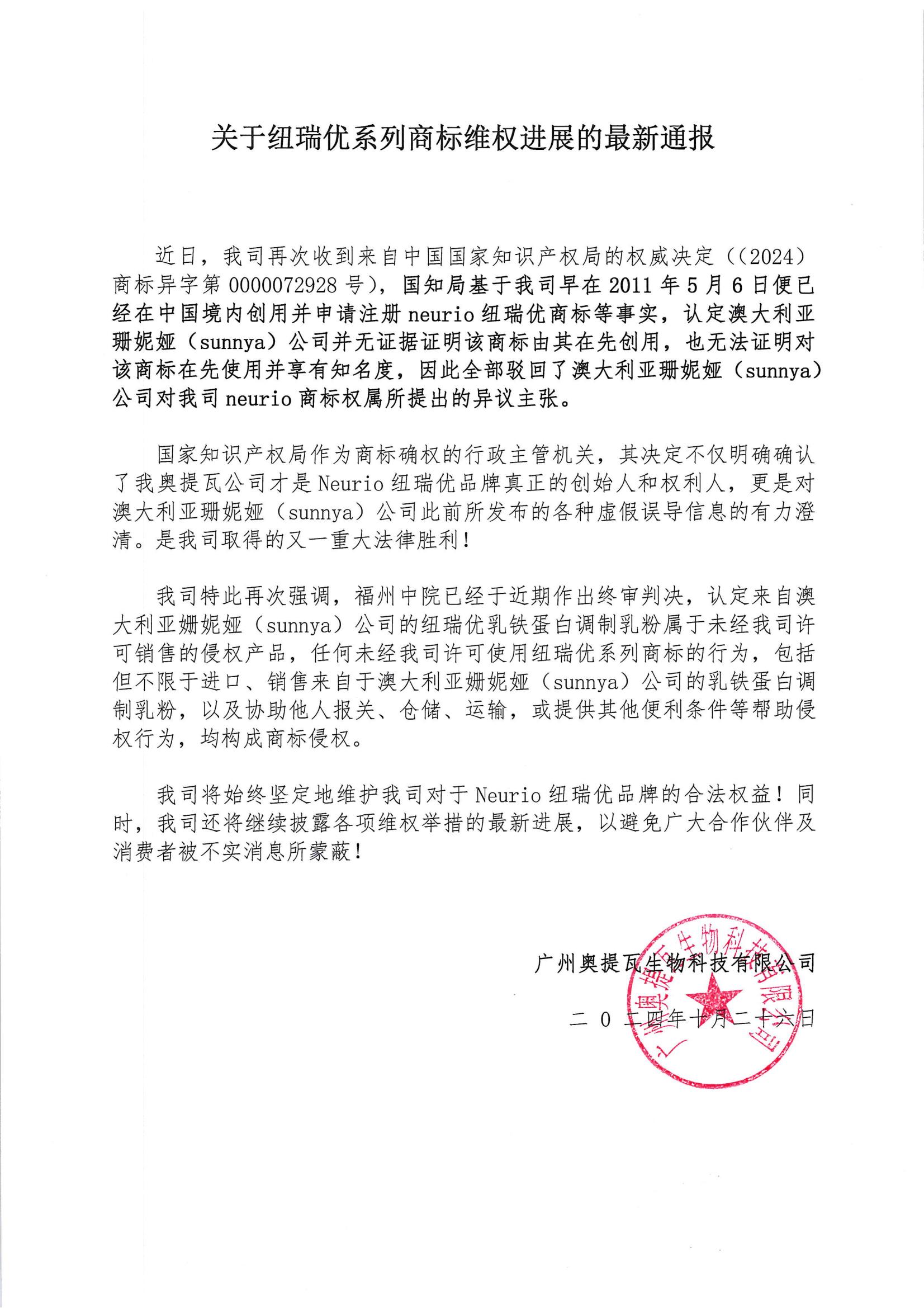 關(guān)于紐瑞優(yōu)系列商標(biāo)維權(quán)進(jìn)展的最新通報(bào)