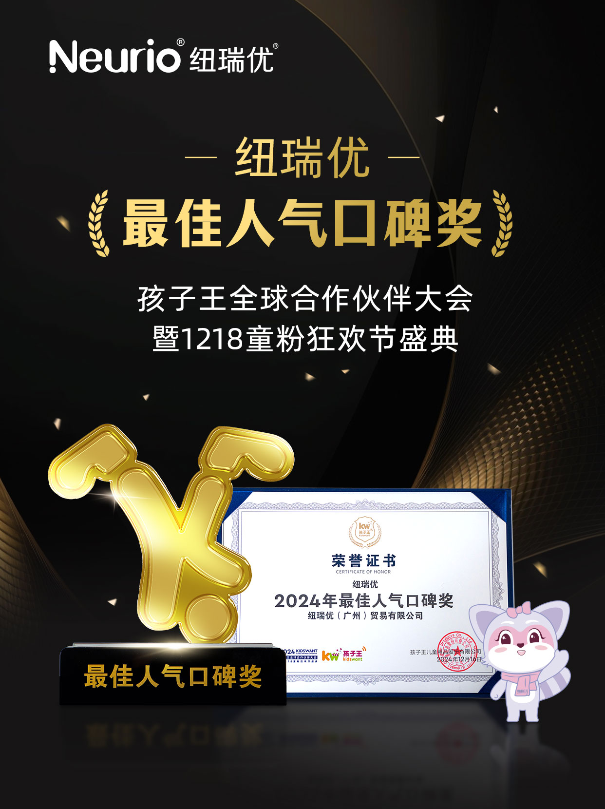 近日,以“在變化中進(jìn)化”為主題的“2024孩子王全球合作伙伴大會(huì)暨1218童粉狂歡節(jié)”圓滿落幕,在這次盛會(huì)上,紐瑞優(yōu)憑借其出色的品牌口碑和高漲的人氣,在眾多競(jìng)爭(zhēng)品牌中脫穎而出,榮獲了最佳人氣口碑獎(jiǎng)。