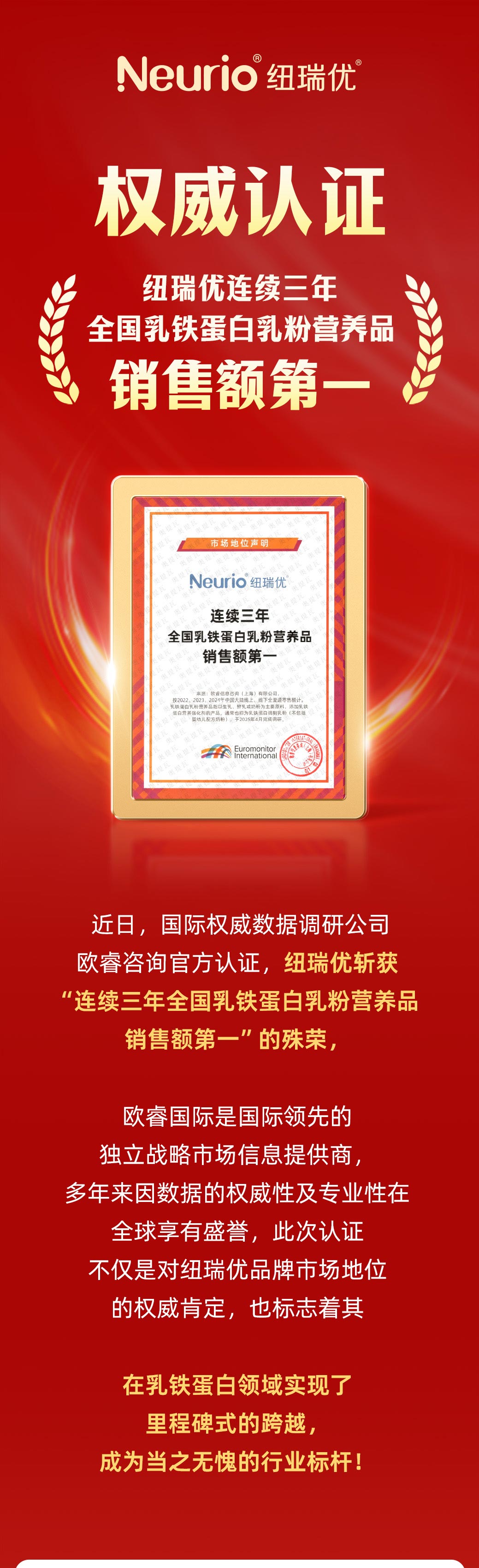 權(quán)威認證!紐瑞優(yōu)連續(xù)三年全國乳鐵蛋白乳粉營養(yǎng)品銷售額第一