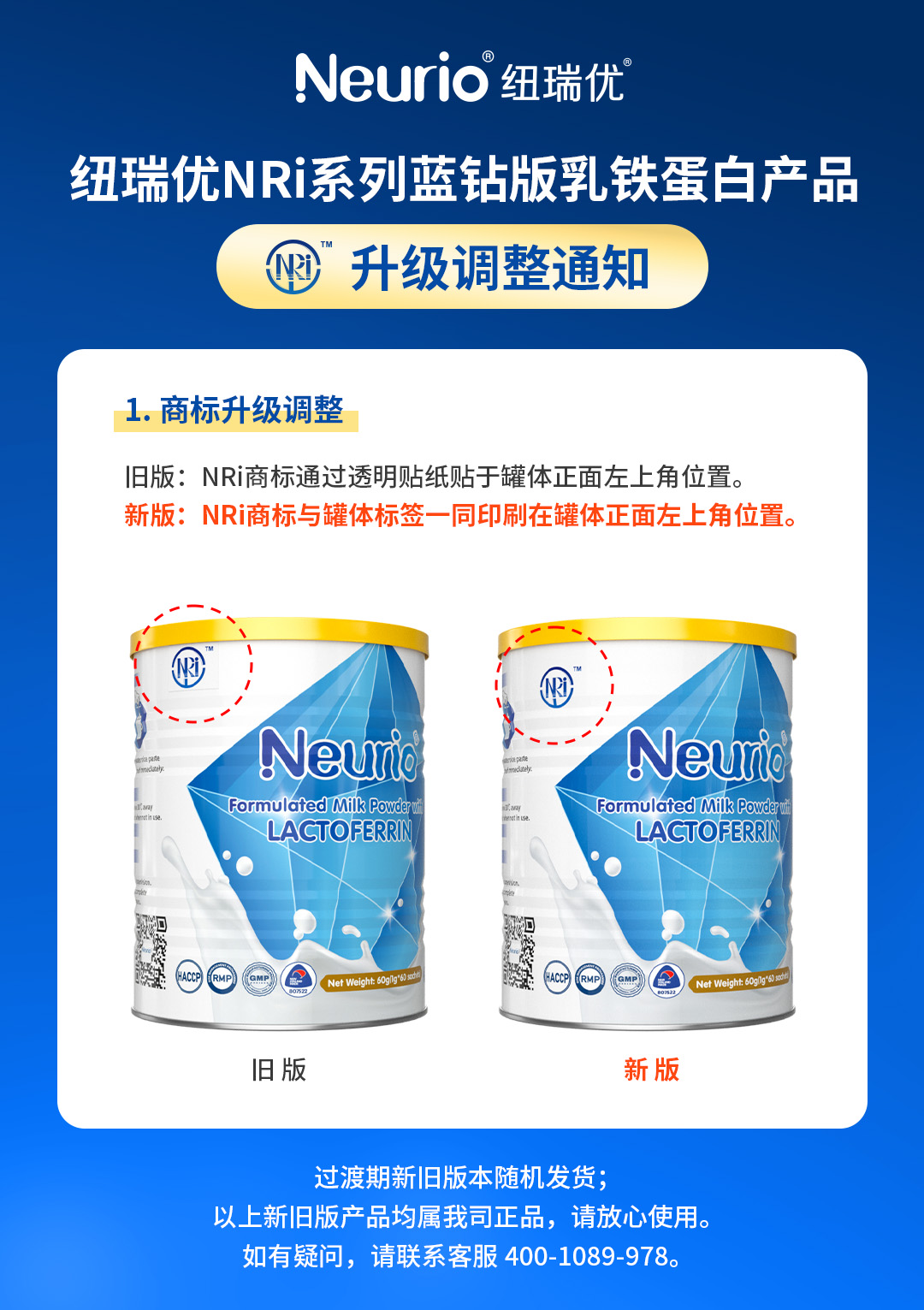 紐瑞優(yōu)NRi系列藍鉆版乳鐵蛋白產(chǎn)品全新升級(新舊版包裝對比圖)