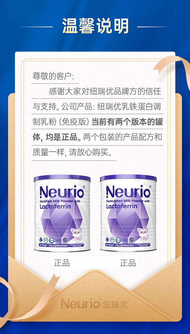 紐瑞優(yōu)乳鐵蛋白調制乳粉(免疫版)新舊包裝說明
